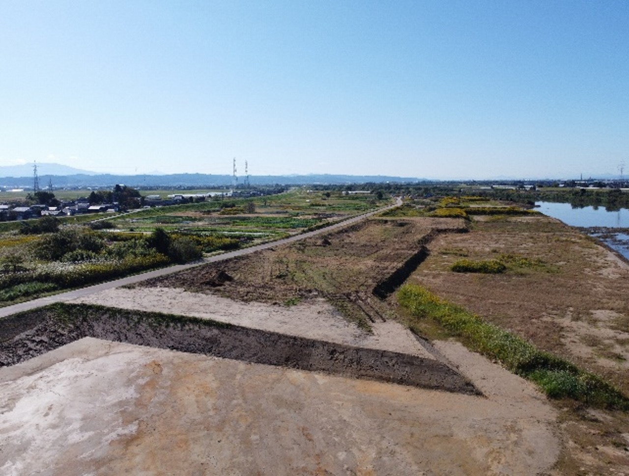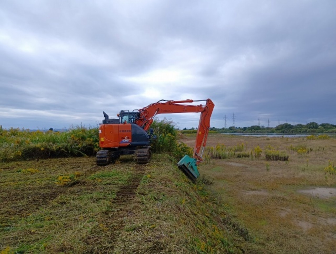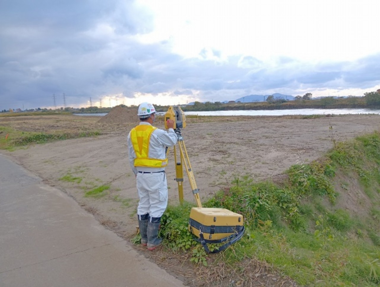 3次元測量を実施するために現場内除草を行い、完了後に測量を実施しました。