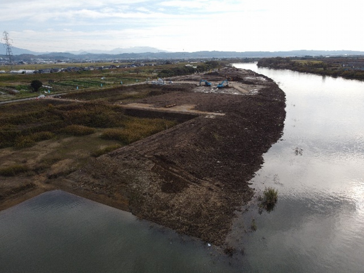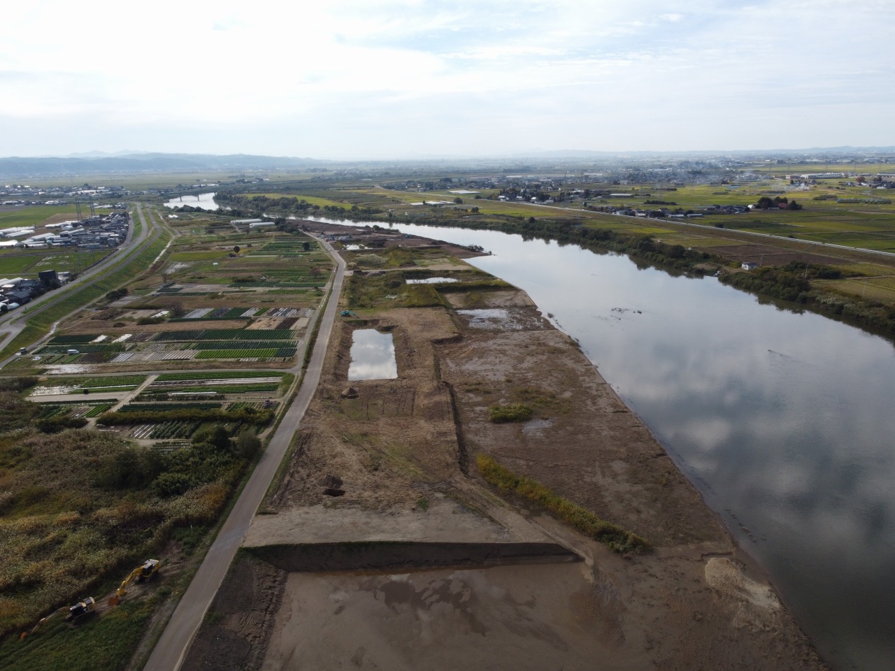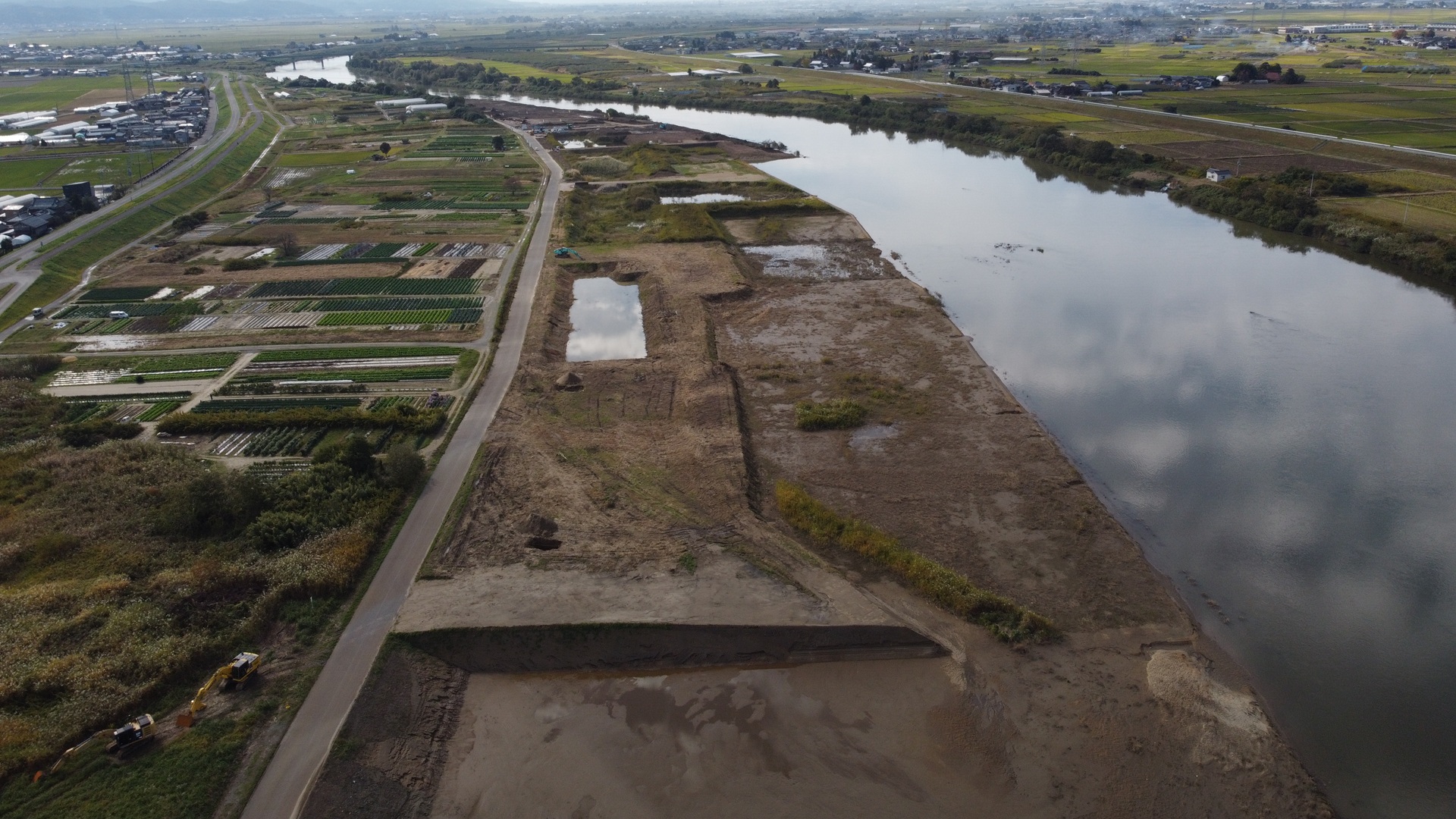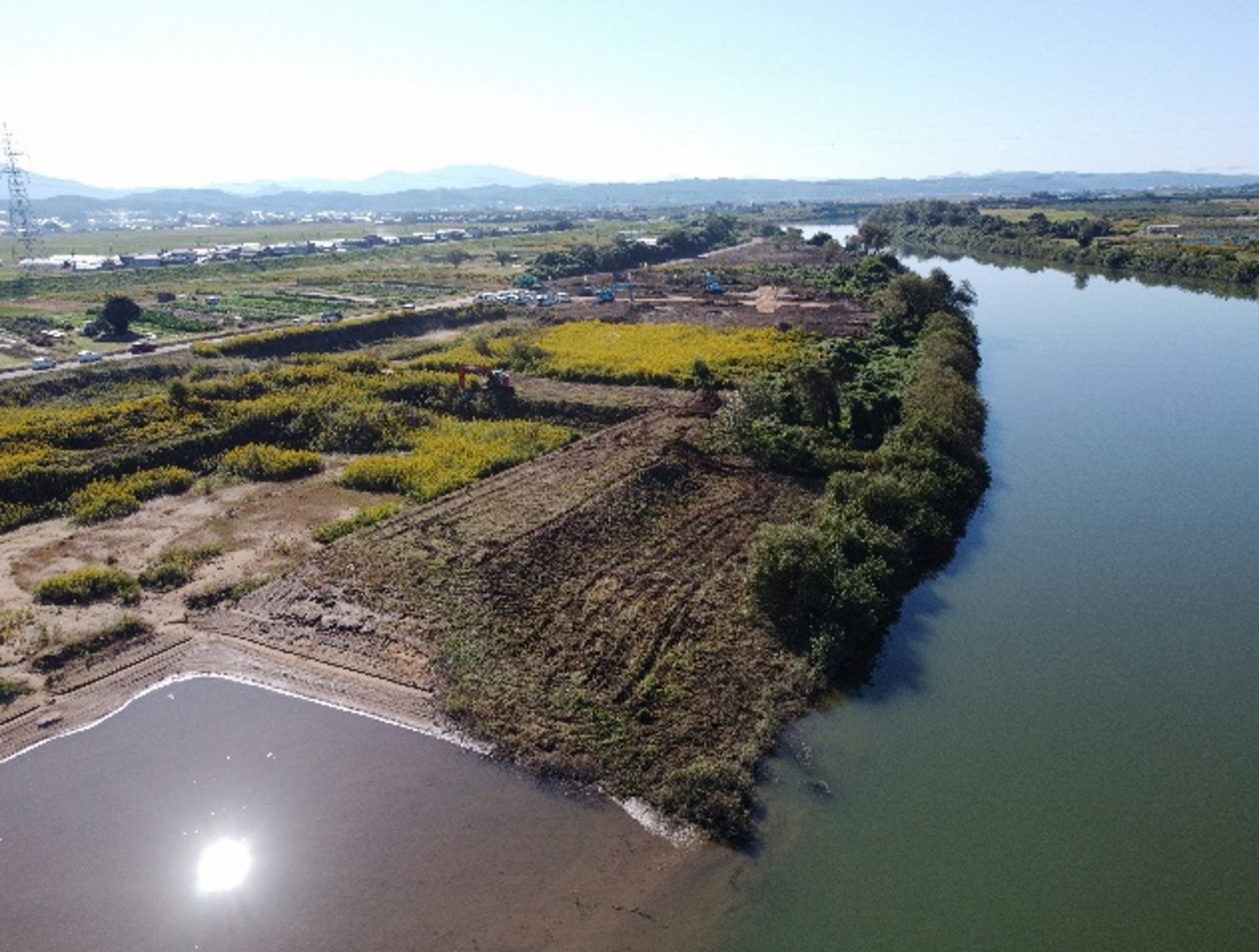3次元測量を実施するために現場内除草を行い、完了後に測量を実施しました。